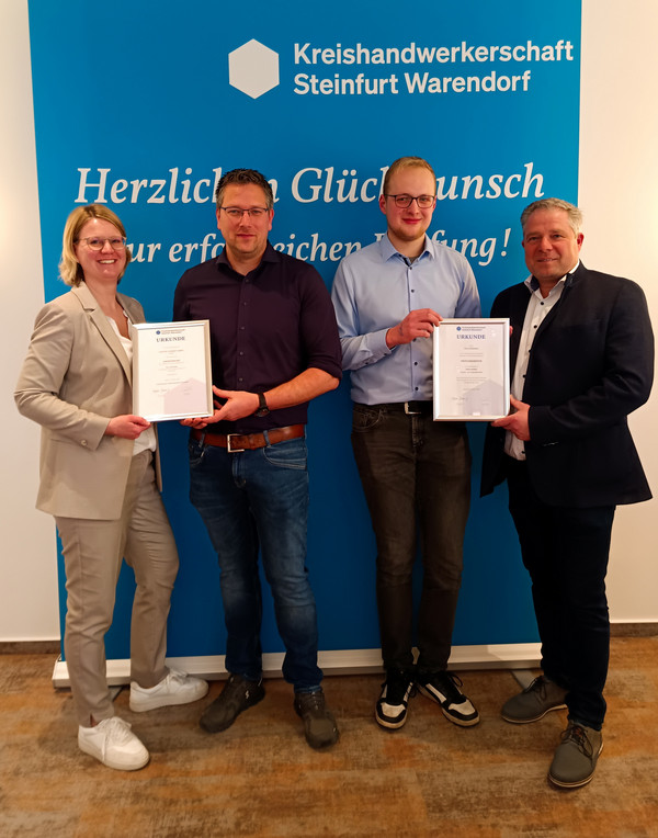 Nach dem Grußwort von Ann-Kristin Erdmann, Bereichsleiterin Innungen der Kreishandwerkerschaft Steinfurt Warendorf, erfolgte die Ehrung des Prüfungsbesten. Ausgezeichnet wurde Nico Kuhlmann, ausgebildet im Betrieb Elektro Schmidt GmbH, Telgte, der in der Gesamtprüfung die höchste Punktzahl erreichte. Ihm sowie seinem Ausbildungsbetrieb wurden Ehrenurkunden und ein Präsent der Innung überreicht.