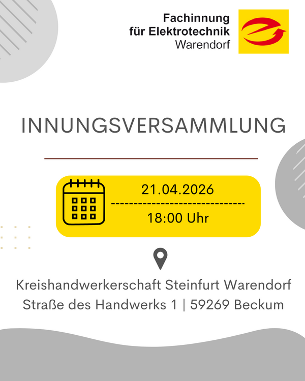 Die Innungsversammlung der Fachinnung für Elektrotechnik Warendorf findet am
